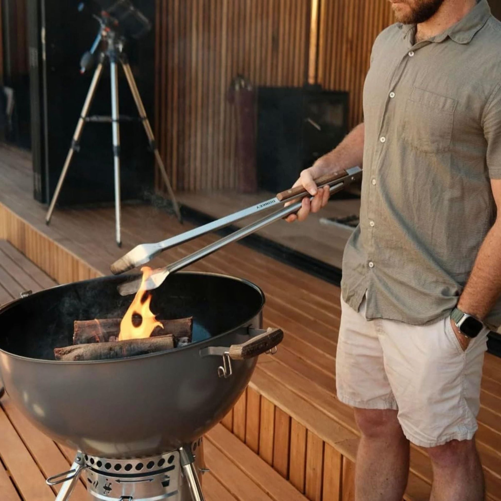 The Donkey Tong Long 27-Inch BBQ Grill Tongs are designed for grill masters seeking premium tools. At an impressive 27 inches, these handcrafted tongs offer exceptional strength and reach for safe and efficient grilling. The unique gripping head ensures flawless flipping without breaking delicate foods. Crafted from 304 food-grade stainless steel and featuring hand-selected white oak handles secured with solid brass rivets, these tongs embody durability and style. Proudly handmade by South African open-fire experts, they include a built-in stainless steel bottle opener and eco-friendly packaging.